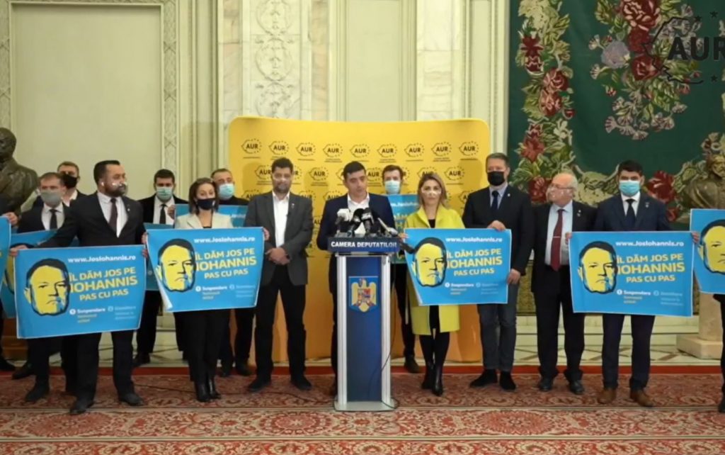 „Anunțăm astăzi inițierea procedurilor pentru suspendarea președintelui Klaus Iohannis. Am început colectarea de semnături în rândul parlamentarilor. Ne-au promis mai mulți parlamentari de la mai multe partide că vor semna această procedură de suspendare. (…) Invităm toate formațiunile atât politice cât și civice să semneze pentru demiterea lui Klaus Iohannis. Ne-au semnat deja și parlamentari de la PNL”, a declarat George Simion, la Parlament, potrivit Digi24.