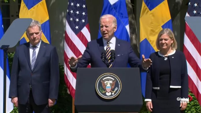 Preşedintele american a spus, în grădina de trandafiri a Casei Albe, că SUA vor lucra cu cele două ţări nordice pentru „a face faţă oricărei agresiuni” de care ar putea fi vizate în timpul procedurii de aderare.