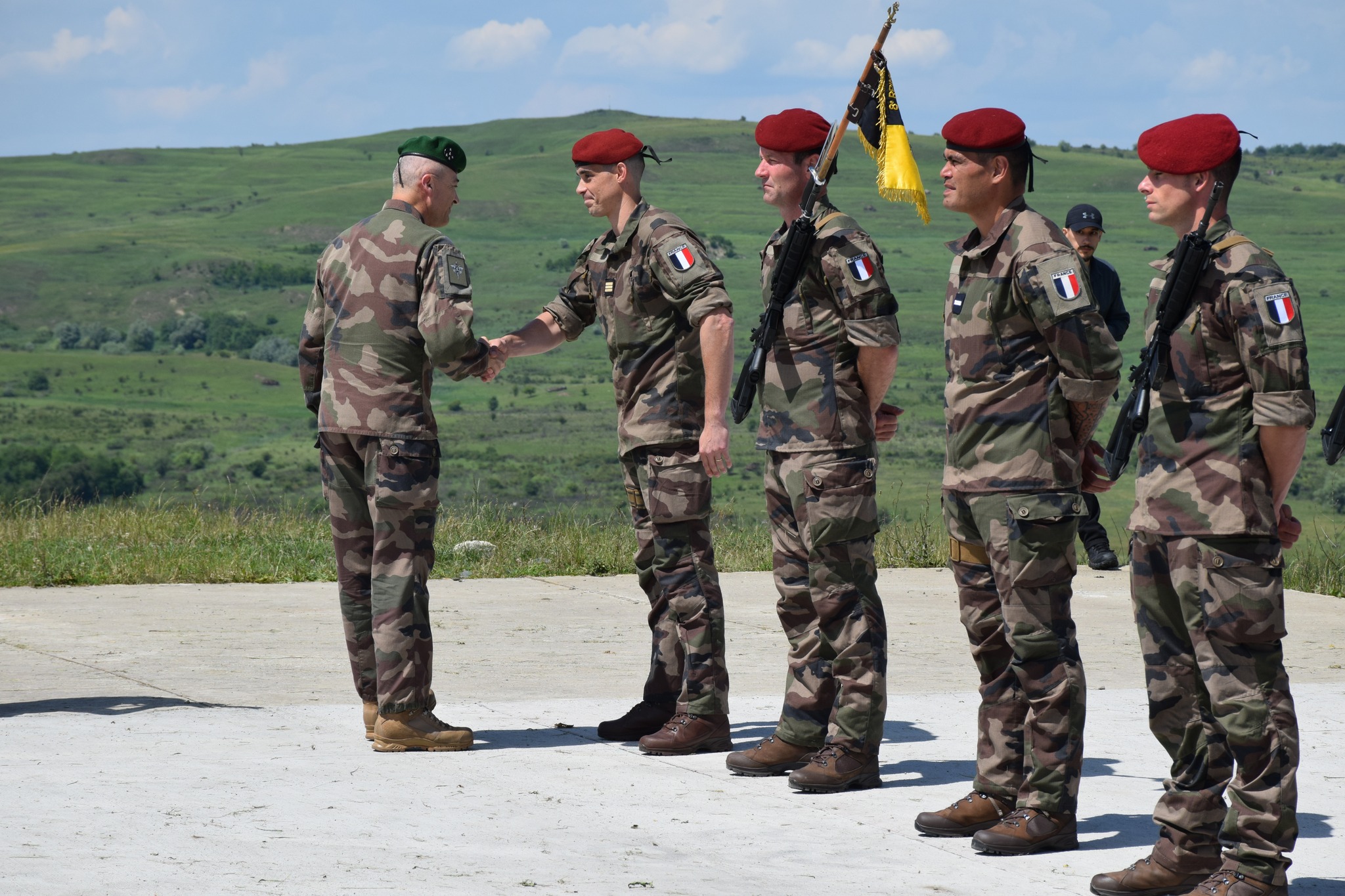 Acesta a participat la recepţia de Ziua Franţei găzduită la misiunea diplomatică din Bucureşti. El a menţionat că o parte dintre militarii Grupului sunt la Cincu, iar altă parte, la Mihail Kogălniceanu.