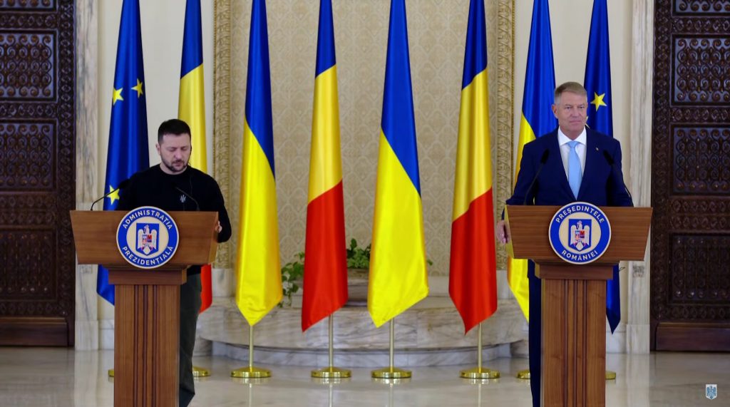 Preşedintele Klaus Iohannis a anunţat, marţi în declaraţia de presă comună cu preşedintele Volodimir Zelenski, că a semnat alături de omologul ucrainean o declaraţie comună prin care relaţia România şi Ucraina este ridicată la nivel de Parteneriat Strategic. Şeful statului i-a transmis omologului său că „susţinerea Ucrainei reprezintă un interes strategic al României” şi cei doi şefi de stat au condamnat, din nou, „în termenii cei mai fermi atacurile repetate ale Rusiei asupra infrastructurii portuare ucrainene”.
